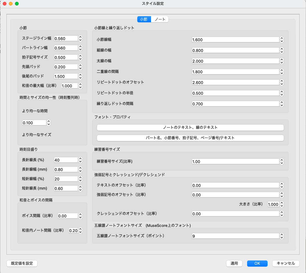 用紙とページの設定、小節やパートのレイアウト設定について説明します。