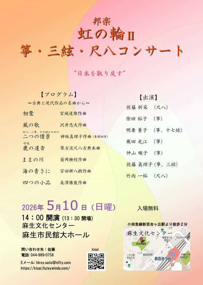 邦楽 虹の輪Ⅱ 「箏・三絃・尺八コンサート」のご案内